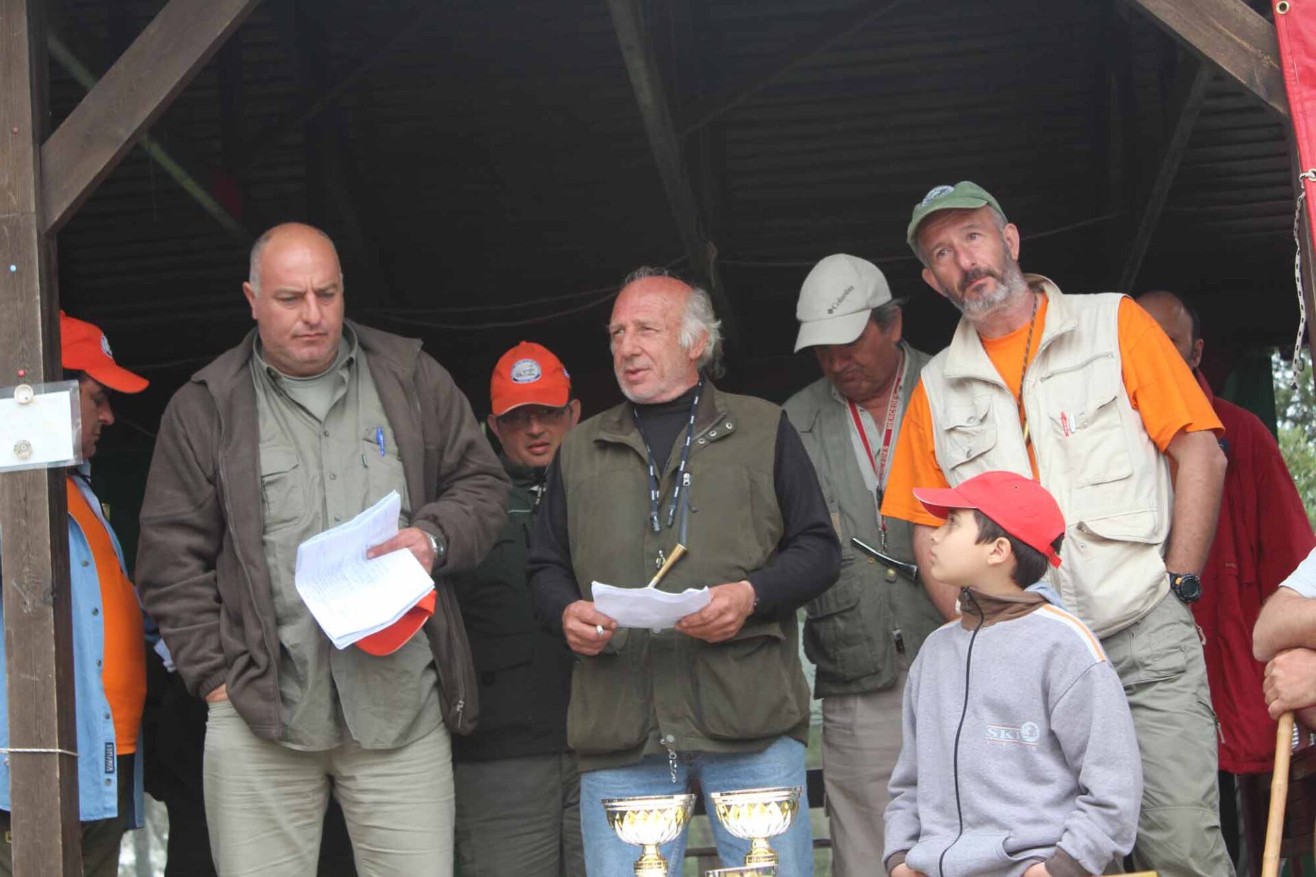 Οι κριτές των αγγλικών φυλών ανακοινώνουν τα αποτελέσματα των αγώνων του Σχιστού που διοργάνωσε ο Κυνηγετικός Σύλλογος Πειραιά στις 30 και 31 Μαρτίου 2013 σε πέρδικα τσουκαρ.