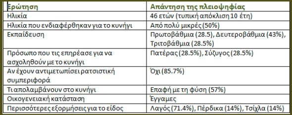 Το προφίλ των Ελληνίδων κυνηγών στο Αρχιπέλαγος φαίνεται στον πίνακα 1.