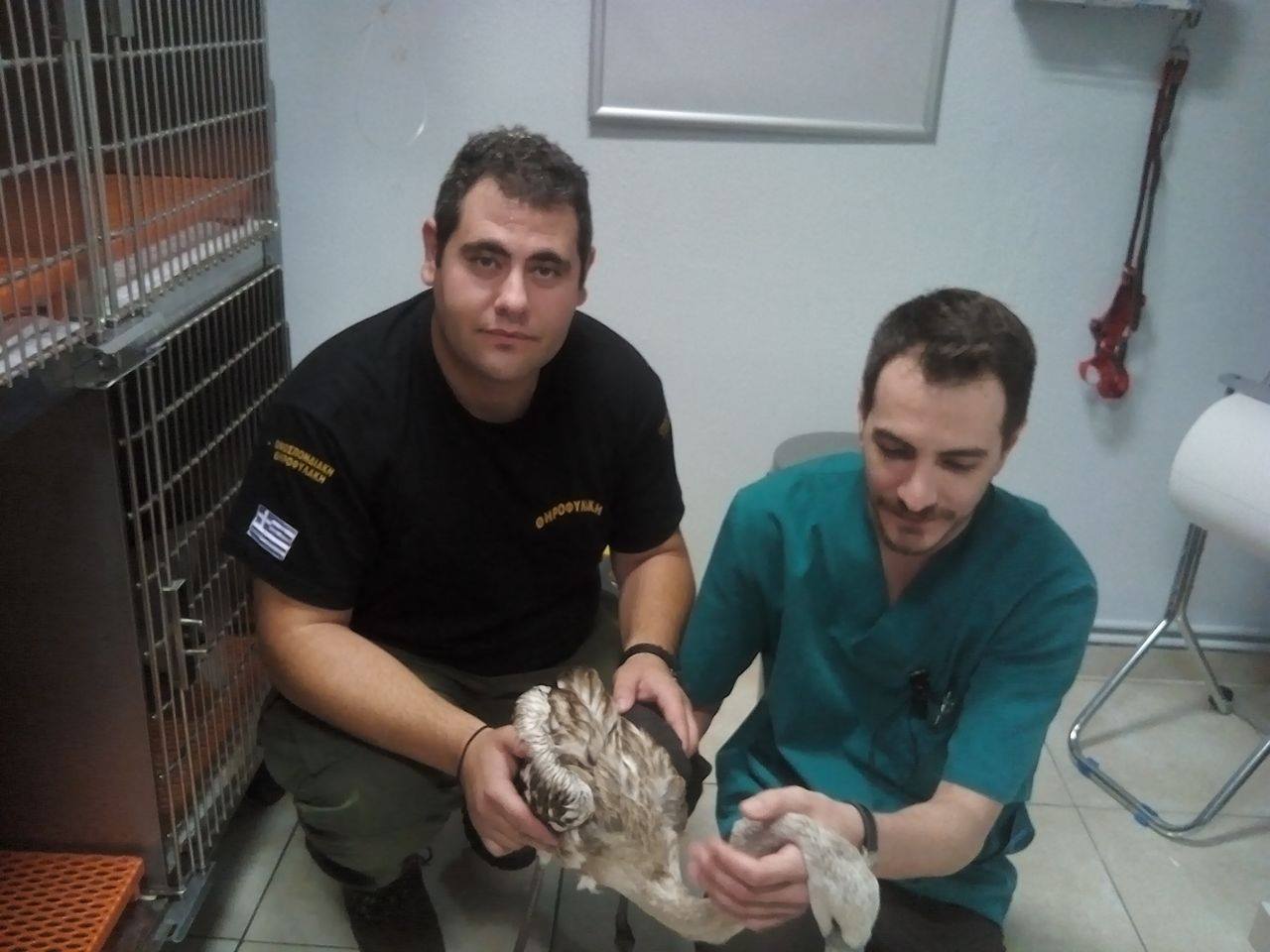 Το τραυματισμένο άγριο πτηνό, μετά από τηλεφωνικές επικοινωνίες, μεταφέρθηκε αρχικά στο κτηνιατρείο του κτηνιάτρου Αντώνη Λυμπέρη, όπου και του παρασχέθηκαν οι πρώτες φροντίδες, έγινε επίδεση και ακινητοποίηση της τραυματισμένης του φτερούγας. Φυσικά, αύριο, με το πρώτο φως, θα μεταφερθεί στο κέντρο περίθαλψης άγριων ζώων ΑΝΙΜΑ με δαπάνες του Κυνηγετικού Συλλόγου μας. Νιώθουμε την ανάγκη να ευχαριστήσουμε και δημόσια όλους, όσοι, βοήθησαν εθελοντικά στην επαγγελματική αυτή προσπάθεια της περισυλλογής του τραυματισμένου πτηνού, η οποία έλαβε χώρα υπό εξαιρετικά αντίξοες καιρικές συνθήκες.