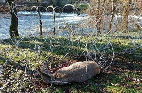 Εκτός από τον ανθρώπινο πόνο πού προκαλεί ή Ευρώπη και οί Βαλκανικές χώρες στους χιλλιάδες απελπισμένους πρόσφυγες και μετανάστες προκαλεί και ένα φρικτό θάνατο αγρίων ζώων μετά από παρατεταμένο πόνο και αγωνία στην προσπαθειά τους να απελευθερωθούν από τά δολοφονικά λεπιδοφόρα σύρματα κατά μήκος των συνόρων τής Ελλάδας των Σκοπίων της Σλοβενίας της Ουγγαρίας της Βουλγαρίας και Κροατίας.