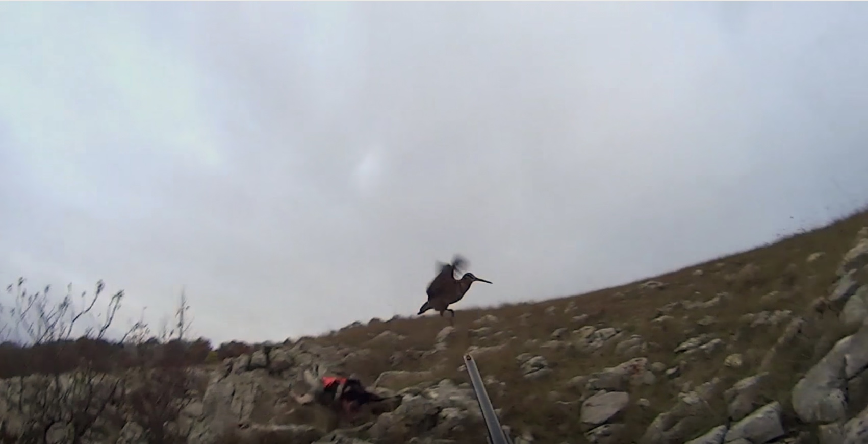 Συναρπαστικό πλάνο από πολύ κοντινό σήκωμα μπεκάτσας ενώ την φερμάρουν 2 επανιέλ μπρετόν. Η μπεκάτσα κατά την …απογείωση της μπλέκεται στα κλαδιά με αποτέλεσμα να ξεφύγει κυριολεκτικά στο παρά ένα από το στόμα του ενός μπρετόν που ήδη εφορμούσε,ενώ το άλλο ήδη είχε κάνει τον κύκλο του βράχου και την περίμενε από την επάνω πλευρά !!!