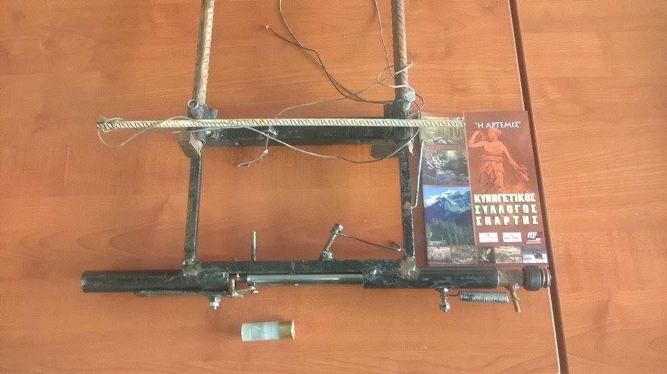 Ένα αυτοσχέδιο, φονικό όπλο στημένο για παράνομη θήρα αγριογούρουνου εντόπισε, πριν λίγες ημέρες, στην ευρύτερη περιοχή της Σελλασίας, μέλος του Κυνηγετικού Συλλόγου Σπάρτης, το οποίο αφόπλισε και ακολούθως, το παρέδωσε στον πρόεδρο, κύριο Γιάννη Καρβουνιάρη, ο οποίος με τη σειρά του κινήθηκε αρμοδίως, παραγγέλλοντας έρευνα για τον εντοπισμό του εγκληματία.