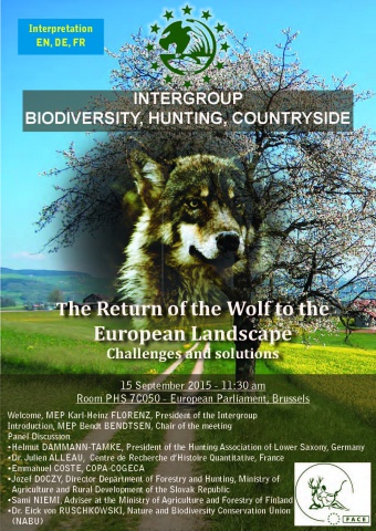 Σε αυτό το πλαίσιο η Διακομματική Ομάδα “Βιοποικιλότητα, Κυνήγι, Εξοχή» του Ευρωπαϊκού Κοινοβουλίου διοργάνωσε ένα συνέδριο στις 15 Σεπτεμβρίου 2015 σχετικά με την επιστροφή του λύκου στο Ευρωπαϊκό Τοπίο με θέμα : Προκλήσεις και λύσεις.