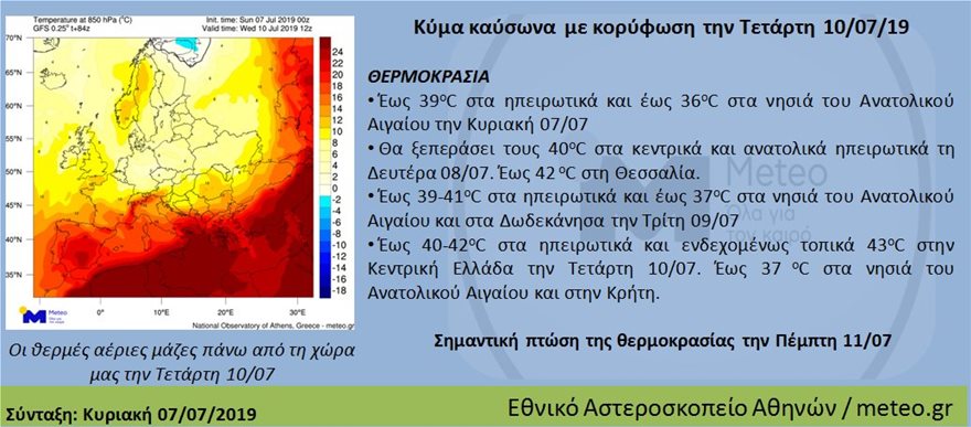 Θερμές αέριες μάζες από την Αφρική θα επεκταθούν στη χώρα μας από σήμερα Κυριακή 07/07/2019 έως και την Τετάρτη 10/07/2019.