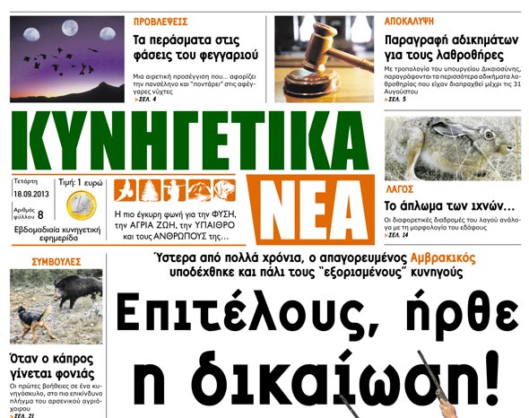 Διαβάστε ακόμη στο όγδοο φύλλο των Κυνηγετικών Νέων που κυκλοφορούν αύριο 18 Σεπτεμβρίου και θα παραμείνουν στα περίπτερα μια εβδομάδα :