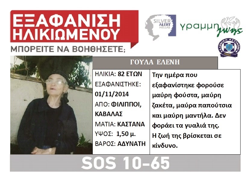 Άλλωστε ήδη από τις πρώτες ημέρες της εξαφάνισης είχε εκδοθεί Silver Alert, μιας και η ίδια αντιμετώπιζε και προβλήματα υγείας και η ζωή της βρισκόταν σε κίνδυνο.