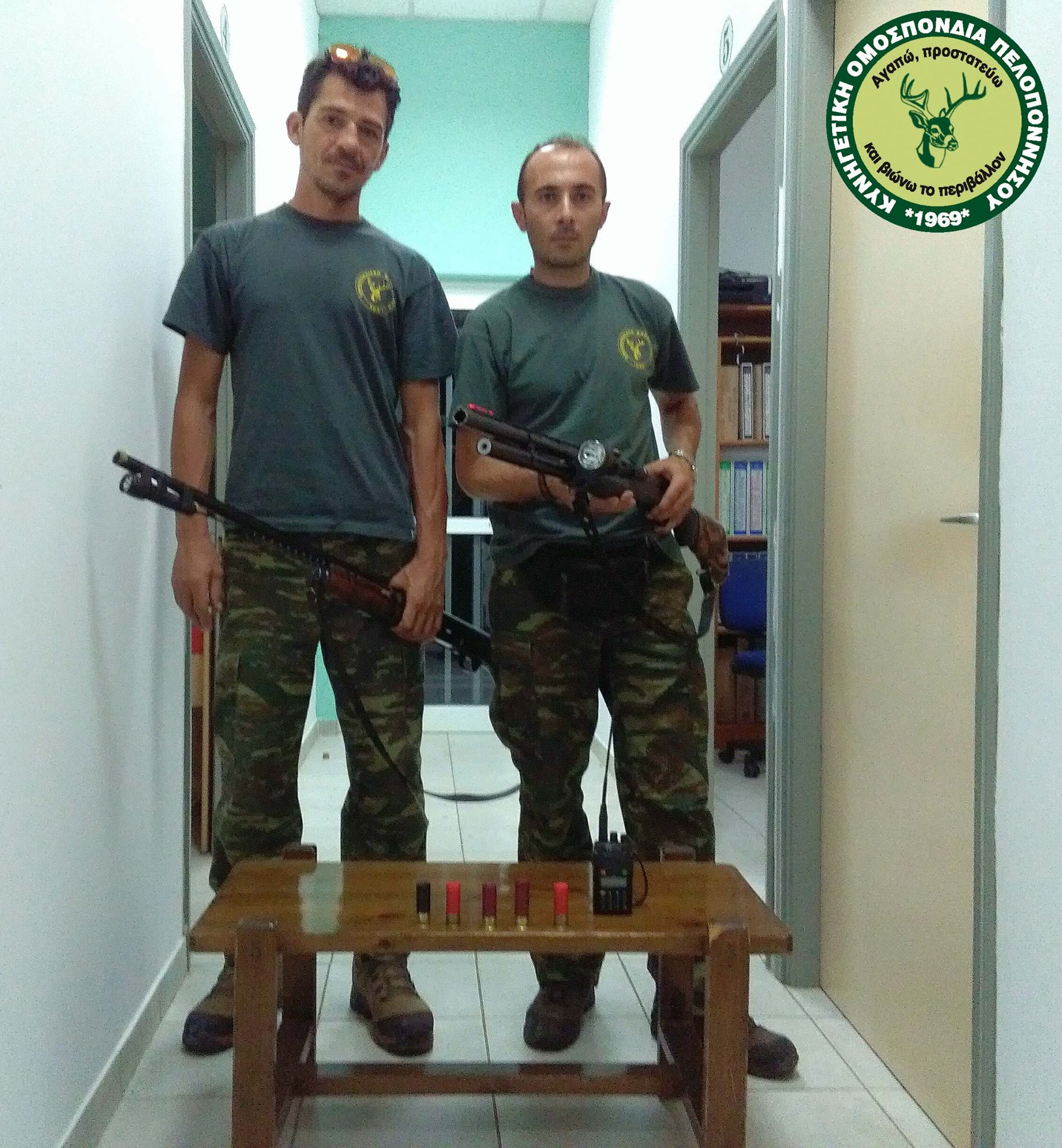 Οι Θηροφύλακες ερευνώντας την γύρω περιοχή εντόπισαν σε διαφορετικά σημεία δύο κυνηγετικά όπλα τύπου καραμπίνες οι οποίες ήταν παραποιημένες δυνάμενες να δεχτούν περισσότερα των τριών φυσιγγίων, εκ των οποίων η μία ήταν γεμάτη με τέσσερα φυσίγγια, καθώς επίσης τα δύο κυνηγετικά όπλα είχαν στην κάνη τους προσδεμένους φακούς προβολείς.