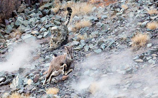 Εσείς μπορείτε να την εντοπίσετε; (Η λύση είναι παρακάτω). Είναι η πρώτη φορά που μια γυναίκα φωτογράφος καταφέρνει να απαθανατίσει το κυνήγι του σπάνιου αυτού ζώου. Η Vandyke κατέγραψε τις εικόνες σε περιοχή της Ινδίας, μετά από ένα δύσκολο ταξίδι στα βουνά για 17 ημέρες.