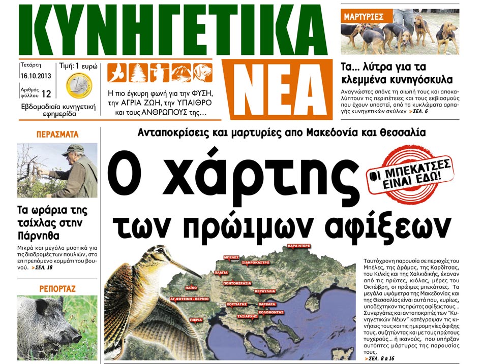 Διαβάστε ακόμη στο δωδέκατο φύλλο των Κυνηγετικών Νέων που κυκλοφορούν αύριο 16 Οκτωβρίου και θα παραμείνουν στα περίπτερα μια εβδομάδα :