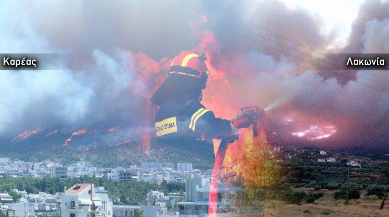 Μάχη με τις φλόγες δίνουν οι πυροσβεστικές δυνάμεις στην προσπάθειά τους να ελέγξουν τέσσερα πύρινα μέτωπα σε Λακωνία, Καρέα, Κορωπί και ΕύβοιαΕιδικότερα, πυρκαγιά εκδηλώθηκε στις 12.28 στη συμβολή των οδών Κισσού και Ίριδος 10 στον Καρέα. Στο σημείο έχουν μεταβεί και επιχειρούν 45 πυροσβέστες με 18 οχήματα ενώ από αέρος συνδράμουν δύο ελικόπτερα και τρία αεροσκάφη.