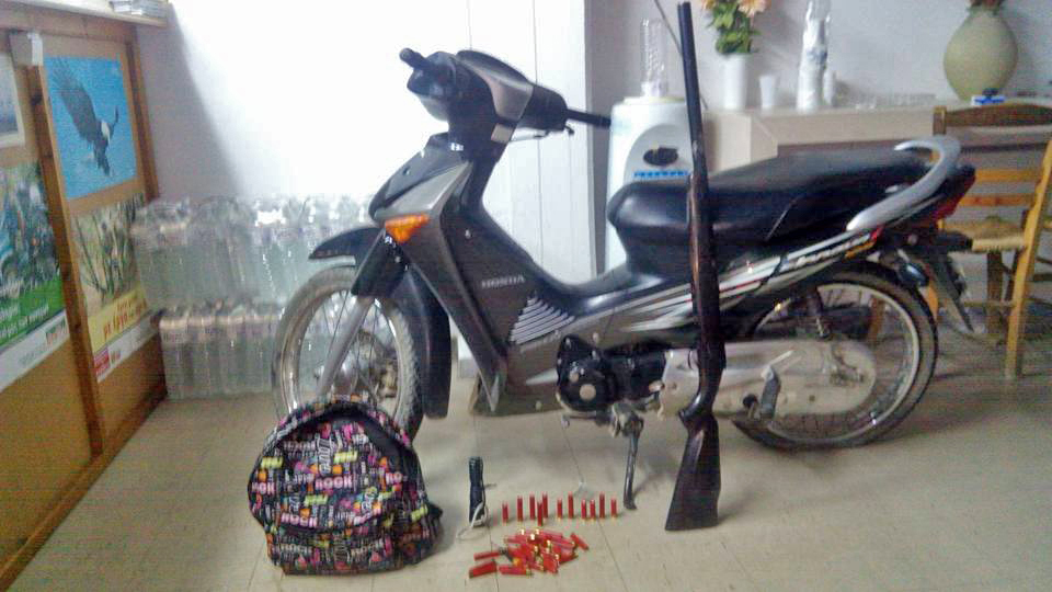 - Τα ξημερώματα της Πέμπτης 24 Σεπτεμβρίου και κατά τη διάρκεια νυχτερινής περιπολίας, εντοπίστηκε στην περιοχή της Ιεράπετρας ένα όχημα να κινείται ύποπτα και να χρησιμοποιεί προβολέα νυκτός προς διάφορες κατευθύνσεις. Οι θηροφύλακες κινούμενοι προσεκτικά προσέγγισαν το όχημα και το ακινητοποίησαν προκειμένου να το ελέγξουν. Στο όχημα, τύπου τζιπ, επέβαιναν συνολικά τρία (3) άτομα και κατά το έλεγχο βρέθηκαν, εκτός από τον προβολέα, μια καραμπίνα γεμάτη με 5 φυσίγγια καθώς και άλλα 97 φυσίγγια. Οι επιβαίνοντες οδηγήθηκαν στον εισαγγελέα και όλα τα μέσα παράνομης θήρας κατασχέθηκαν όπως ορίζει η νομοθεσία.
