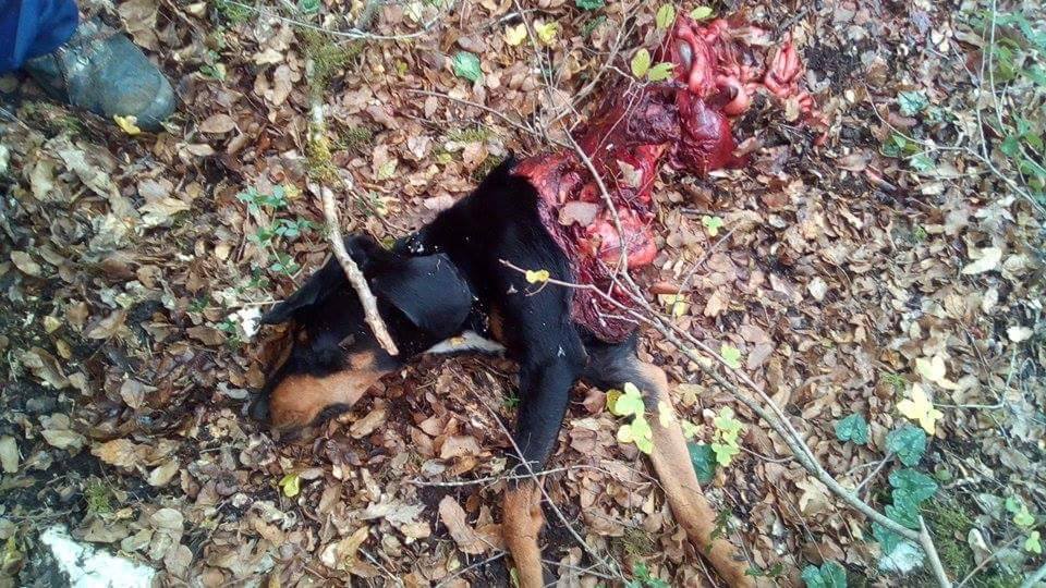 Κάποια στιγμή γύρω στις 13.30 και ενώ η παγάνα βρισκόταν σε εξέλιξη ο παγανιέρης μέσω του gps διαπίστωσε ότι το συγκεκριμένο άτυχο σκυλί είχε ξεμείνει αρκετά πίσω από τα υπόλοιπα και φαινόταν ακίνητο,νομίζοντας λοιπόν ότι έκανε στάμπα σε γουρούνι κατάφερε να πλησιάσει το σημείο και με φρίκη αντίκρισε το κατασπαραγμένο κουφάρι του τετράποδου συνάδελφου του.