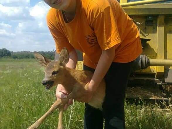 Το μικρό ζαρκαδάκι ήταν κρυμμένο μέσα στα χόρτα στο χωράφι και την ώρα λοιπόν που η λεπίδα της κομπίνας τραβούσε τα χόρτα έκανε να φύγει και πιάστηκε στην ανέμη του μαχαιριού. Ο Νίκος με σβέλτα αντανακλαστικά πρόλαβε εγκαίρως να σταματήσει το μηχάνημα και να ξεμπλέξει το μικρό ζαρκάδι.