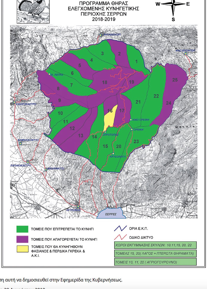 Ρυθμίζουμε το πρόγραμμα κυνηγιού της ελεγχόμενης κυνηγετικής περιοχής (Ε.Κ.Π.) Σερρών για την κυνηγετική περίοδο 2018 – 2019 ως κατωτέρω: