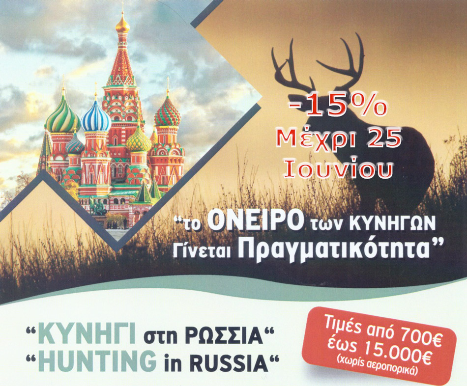 15% έκπτωση στην αναγραφόμενη τιμή θα έχει όποιος δηλώσει συμμετοχή, μέχρι τις 25 Ιουνίου, για τα γκρούπ που θα κυνηγήσουν μπεκάτσες στη Ρωσία από 15 Αυγούστου έως 30 Οκτωβρίου.