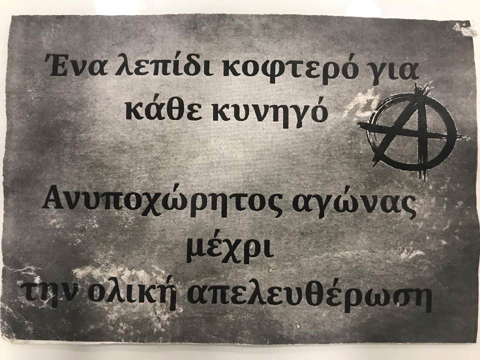 Αυτό είναι το μήνυμα που έστειλαν οι γνωστοί-άγνωστοι που επιτέθηκαν εχθές το βράδυ στα γραφεία του Κυνηγετικού Συλλόγου Θεσσαλονίκης.