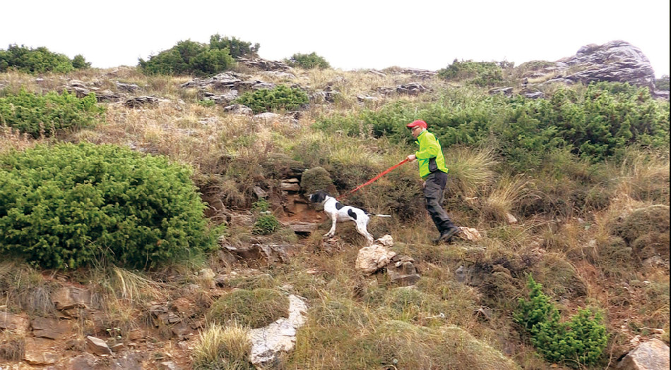 Ο Αγαμέμνονας κατάπιε το βουνό και φέρμαρε ένα κοπάδι πέρδικες περίπου 350 μέτρα μακριά από τον κυναγωγό του. Το σημείο ήταν δύσκολο και ο Ηλίας Τσιρογιάννης έκανε περισσότερο από 30 λεπτά για τον πλησιάσει.