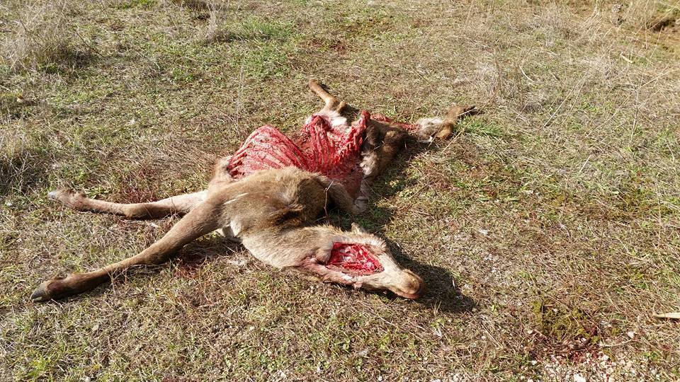 Βρέθηκε στη περιοχή των Δερβενοχωρίων ( Μαζαρέϊκα ) την Παρασκευή στις 23/12/16 . Το ζώο ( ελάφι ) ήταν φρέσκο, μάλλον βραδινό. Το δάγκωμα – σκίσιμο στον λαιμό είναι το αδιαμφισβήτητο διαπιστευτήριο των λύκων που δηλώνουν δυναμικά την παρουσία τους και σε αυτή την περιοχή, εναντίον των ήμερων ελαφιών της Πάρνηθας.