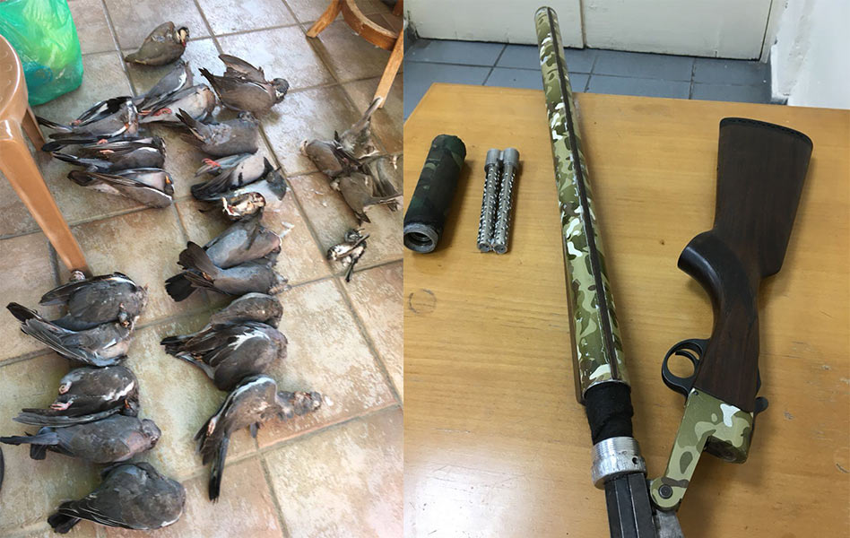 Κατά την έρευνα στην εν λόγω οικία εντοπίστηκαν και κατασχέθηκαν ως τεκμήρια 28 σκοτωμένα άγρια πτηνά, κάποια εκ των οποίων φρεσκοσκοτωμένα (δηλ. 18 φάσες, 1 περδίκι, 4 φιλικουτούνια, 1 τρυγόνι, 2 ζευκαλάτες, 2 αγριοπερίστερα) ένα φλοπέρ με ενσωματωμένο σιγαστήρα καθώς και δύο σιγαστήρες.
