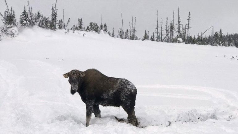 Στο χιόνι παγιδεύτηκε μία άλκη στον Καναδά, με αποτέλεσμα να χρειαστεί ανθρώπινη βοήθεια για να απεγκλωβιστεί.