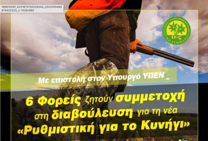 “Στις 18/07/2021 στείλαμε τις προτάσεις μας για τη νέα ρυθμιστική για το κυνήγι στο Υπουργείο Περιβάλλοντος.