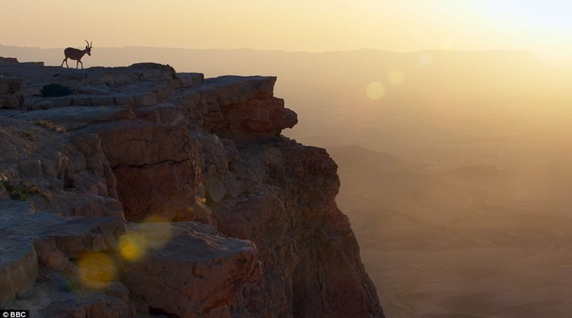 Για να γλιτώσει ο μικρός αίγαγρος αν και δεν έχει «πάτημα», κάνει ένα άλμα 10 μέτρων και βρίσκεται ξανά σε σταθερό έδαφος προκειμένου να απομακρυνθεί από τον κυνηγό του ενώ η αλεπού παρακολουθεί ανήμπορη από την κορυφή του βουνού.