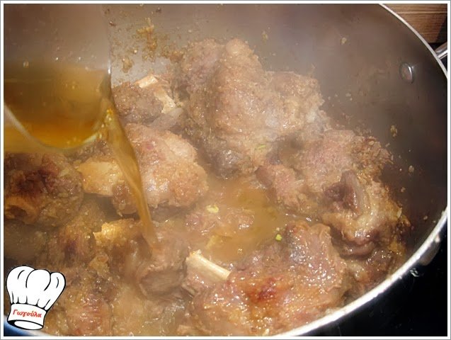 Κλεινουμε με το καπακι την κατσαρολα και το αφηνουμε σε μετρια φωτια να σιγοβρασει για 2 περιπου ωρες.