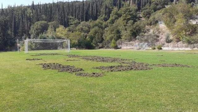 Στις φωτογραφίες το γήπεδο Ομβριακής, κυριολεκτικά «οργωμένο» από τα συγκεκριμένα τετράποδα: