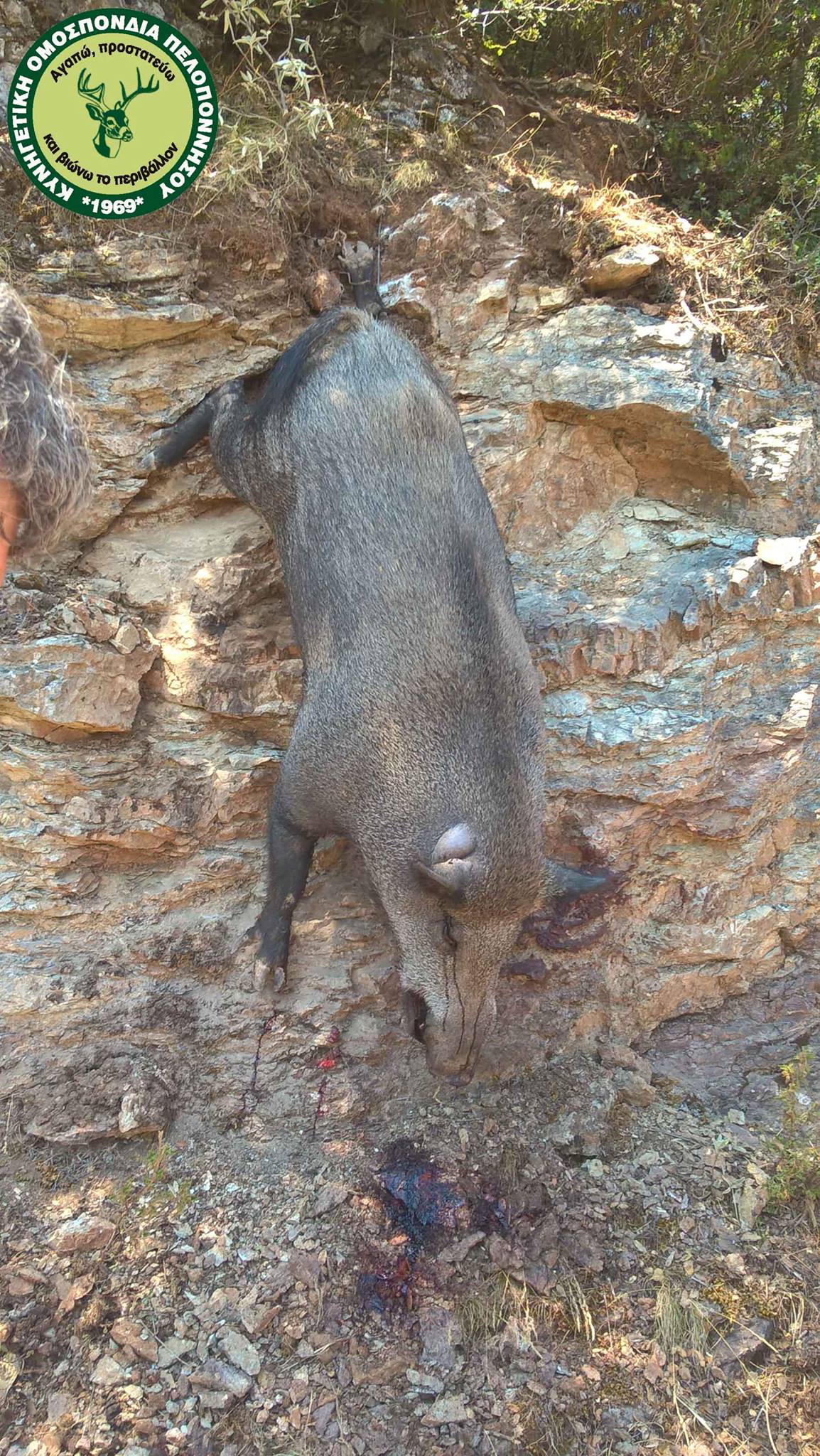 Φτάνοντας στην περιοχή ο Θηροφύλακας και ο αντιπρόεδρος του ΚΣ Αιγίου βρέθηκαν μπροστά σε ένα μακάβριο και αποκρουστικό θέαμα καθώς αντίκρυσαν σε πρανές δασικού δρόμου στην θέση «Μπονίκι» έναν νεκρό μεγάλο αγριόχοιρο κρεμασμένο από θηλιά στο πίσω αριστερό πόδι του. Δυστυχώς το άτυχο ζώο είχε «σκάσει» στην προσπάθειά του να διαφύγει από την παγίδα η οποία είχε τοποθετηθεί έτσι ώστε το βάρος του να λειτουργήσει εναντίον του. Ο αγριόχοιρος από τον οποίο αναδυόταν έντονη δυσοσμία λόγω της σήψης του θάφτηκε έτσι ώστε να μην αποτελέσει εστία μόλυνσης. Στην δε γύρω περιοχή εντοπίστηκε άλλη μία θηλιά φτιαγμένη από ψιλό σύρμα η οποία ενδεχομένως είχε τοποθετηθεί για την σύλληψη λαγών.