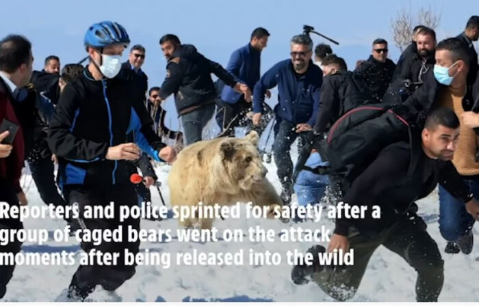 Αιχμάλωτες αρκούδες επιτίθενται στο πλήθος στην τελετή απελευθέρωσής τους…VIDEO