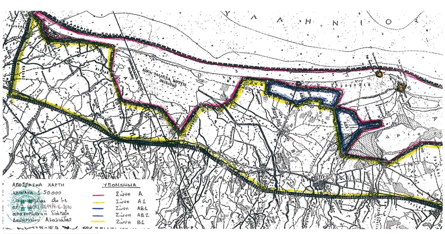 “Απαγορεύουμε για δύο (2) έτη, το κυνήγι όλων των θηραμάτων στην περιοχή που ορίζεται από τις ζώνες Α, ΑΒ1, ΑΒ2, Α1, Β1 σύμφωνα με το άρθρο 4 της με αριθ. 12365/29-4-2009 κοινή υπουργική απόφαση (ΦΕΚ 159/ δ/29-4-2009) «Χαρακτηρισμός των χερσαίων, υδάτινων και θαλάσσιων περιοχών της λιμνοθάλασσας Κοτυχίου, του δάσους Στροφυλιάς και της ευρύτερης περιοχής ως Εθνικό Πάρκο Κοτυχίου-Στροφυλιάς».