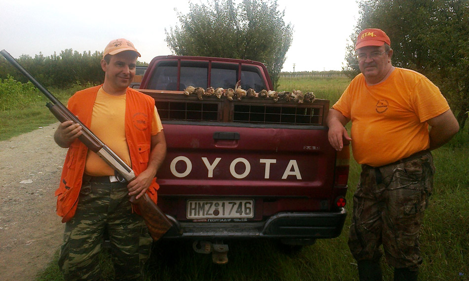 Στη φωτογραφία από αριστερά είναι ο Πρόεδρος του Κυνηγετικού Συλλόγου της Μελίκης Κώστας Ντόβας και αριστερά ο πρώην πρόεδρος του ΚΣ Μελίκης Θόδωρος Γκόγκας σε πρόσφατη εξόρμησή τους για ορτύκια.