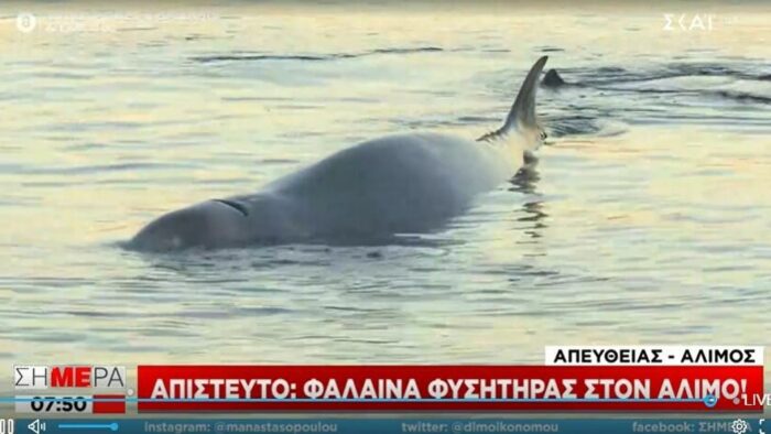 Μία φάλαινα φυσητήρας έχει βγει λίγα μέτρα μακριά από την παραλία του Αλίμου.