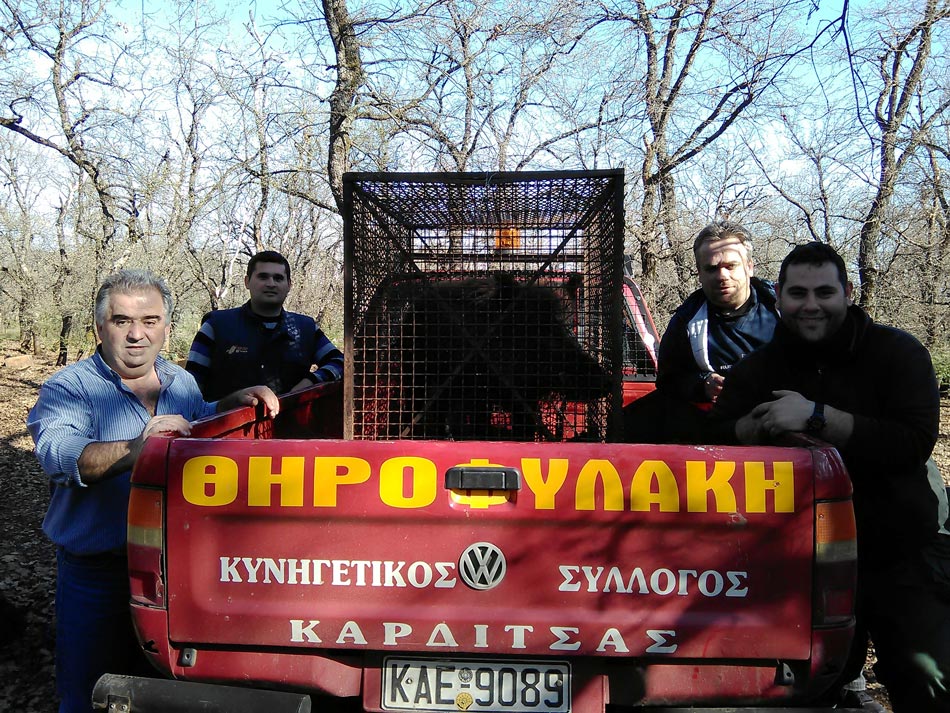 Ολοκληρώθηκαν το μεσημέρι της Πέμπτης 2/4 2015 οι πολυήμερες προσπάθειες για την απελευθέρωση των αγριόχοιρων από το εκτροφείο του Συλλόγου μας που βρίσκεται στο Καλλίθηρο Καρδίτσας. Σύμφωνα με την εγκεκριμένη μας μελέτη και μετά τους προβλεπόμενους γενετικούς και υγειονομικούς ελέγχους, απελευθερώθηκαν σταδιακά σε ομάδες συνολικά 14 αγριόχοιροι (δύο μάνες και 12 παράγωγα) σε τρεις απαγορεύσεις θήρας στον τομέα ευθύνης του Δασαρχείου Καρδίτσας.