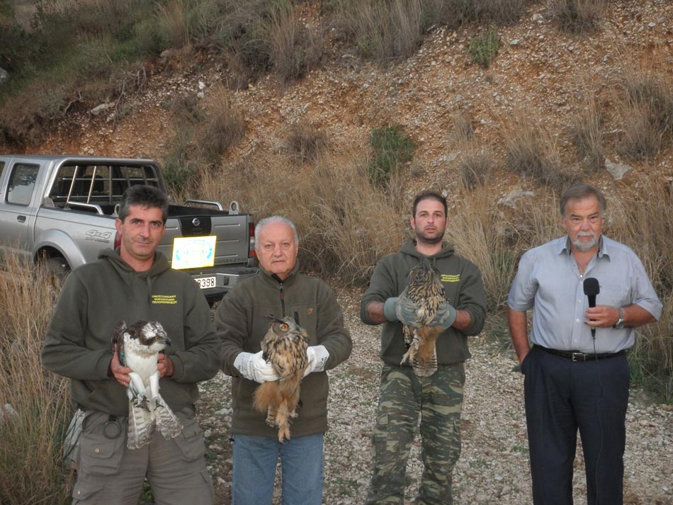 Η Κυνηγετική Ομοσπονδία Πελοποννήσου απελευθέρωσε στο φυσικό τους περιβάλλον δύο μπούφους, έναν ψαραετό και ένα γεράκι.