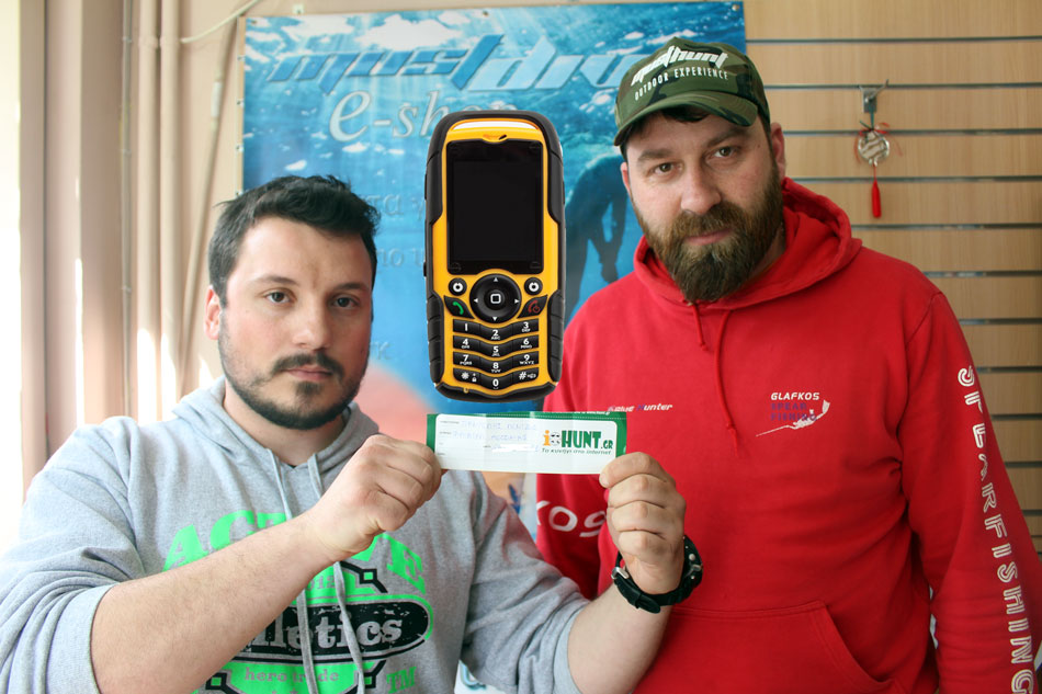 Έγινε σήμερα η κλήρωση για το κινητό τηλέφωνο GETNORD Walrus. Στην κλήρωση συμμετείχαν όσοι συμπλήρωσαν το κουπόνι συμμετοχής που προμηθεύτηκαν από το περίπτερο του ihunt στην Outdoor Expo 2014. To τηλέφωνο είναι μια προσφορά της εταιρείας SCOLOPAX ENGINEERS η οποία εισάγει τα ανθεκτικά αυτά κινητά τηλέφωνα στην Ελλάδα. Περισσότερες πληροφορίες στο www.scolopax.gr. Η κλήρωση έγινε στο κατάστημα του www.must-hunt.gr από όπου μπορείτε και να αγοράσετε τα συγκεκριμένα τηλέφωνα σε προνομιακές τιμές.