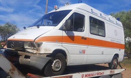 Παρά την προσπάθεια που έκανε ο οδηγός του ασθενοφόρου να αποφύγει το μεγαλόσωμο ζώο αυτό δεν κατέστη εφικτό.