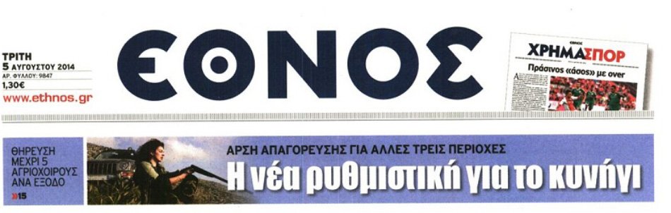 Διαβάστε όλη τη ρυθμιστική στο ΕΘΝΟΣ που κυκλοφορεί σήμερα και εκτενές ρεπορτάζ στο ΕΘΝΟΣ-ΚΥΝΗΓΙ που κυκλοφορεί την Τετάρτη.