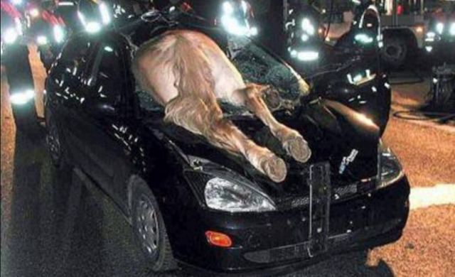 Σκοτώθηκε το άτυχο ζώο, ο οδηγός δεν τραυματίστηκε, άλλα το αυτοκίνητο έπαθε σοβαρές υλικές ζημιές….
