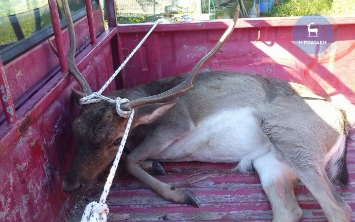 Άμεση ήταν για ακόμη μια φορά η κινητοποίηση της θηροφυλακής του κυνηγετικού συλλόγου Ρόδου και της δασικής υπηρεσίας που μετέφεραν το τραυματισμένο ζώο στον κυνηγετικό σύλλογο προκειμένου να το περιθάλψει η κτηνίατρος του δήμου. Το μεγαλόσωμο ελάφι υπολογίζεται οτι είναι περίπου 5 ετών.