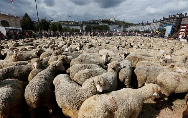 Με πρόβατα γέμισαν κεντρικοί δρόμοι της γαλλικής πόλης Λυών τη Δευτέρα, καθώς εκατοντάδες κτηνοτρόφοι διαδήλωσαν με τα ζώα τους, διαμαρτυρόμενοι για τις αυξημένες επιθέσεις σε βάρος των αμνοεριφίων τους από λύκους.