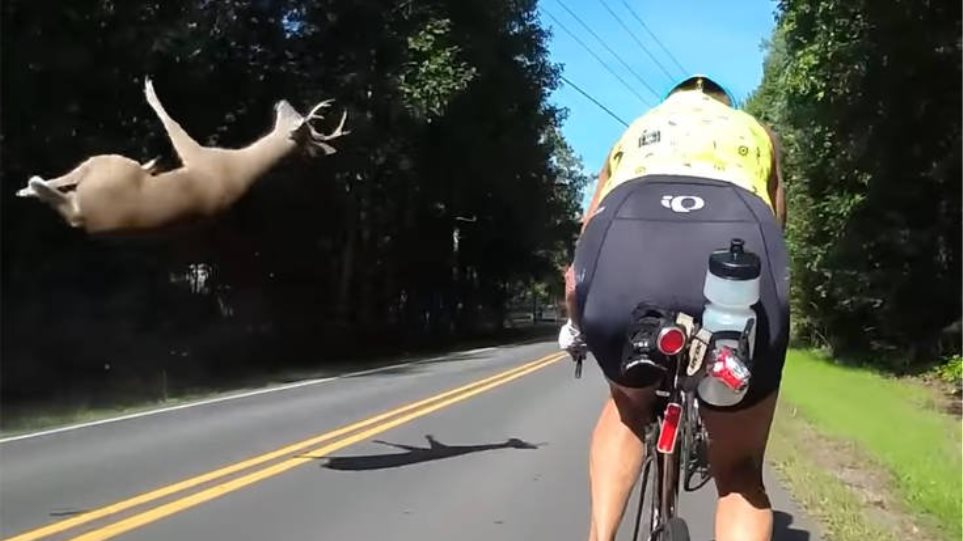 Ένα «ιπτάμενο» ελάφι παρ’ ολίγον να χτυπήσει ποδηλάτες στη Βόρεια Καρολίνα των ΗΠΑ, μετά την πρόσκρουση του άτυχου ζώου με διερχόμενο αυτοκίνητο.