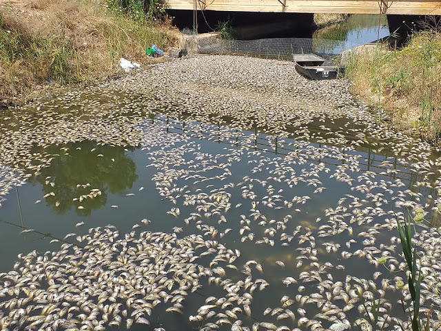 Χιλιάδες νεκρά ψάρια βρίσκονται στη διωρυγα Κλεοπατρας που συνδέει την λίμνη Βουλκαριά με το Ιόνιο, στον Άγιο Νικόλαο Ακτίου-Βόνιτσας.