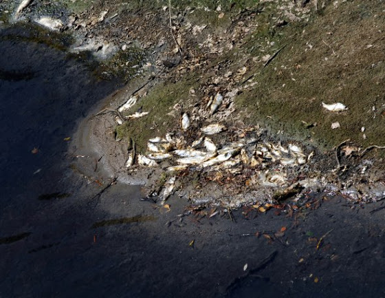 Στο ίδιο έργο θεατές είναι οι τρικαλινοί καθώς είδαν για πολλοστή φορά το αγαπημένο τους ποτάμι να ξερνάει νεκρά ψάρια. Συγκεκριμένα, εκατοντάδες νεκρά ψάρια ξεβράστηκαν στις όχθες τα νερά του Πηνειού στην περιοχή της παλιάς γέφυρας Καραβόπορου.