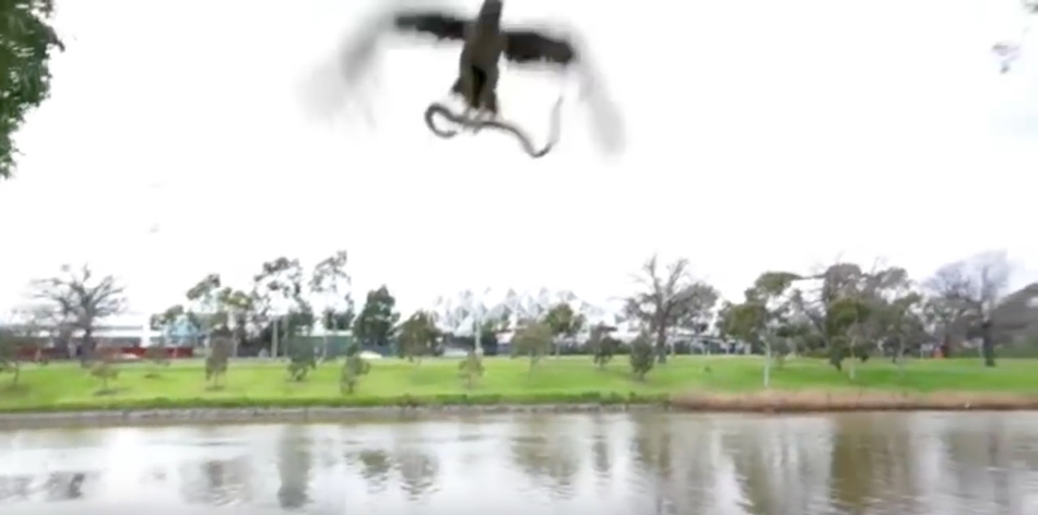 Το γεράκι εμφανίστηκε και έκανε βόλτες πάνω από το ποτάμι όταν με μια απότομη βουτιά στις όχθες του ποταμού έπιασε ένα φίδι και το σήκωσε στον αέρα. Και αντί να πάει να απολαύσει το δικό του γεύμα κάπου απόμερα, το πέταξε πάνω από τα κεφάλια των ανθρώπων που άρχισαν να τρέχουν έντρομοι.