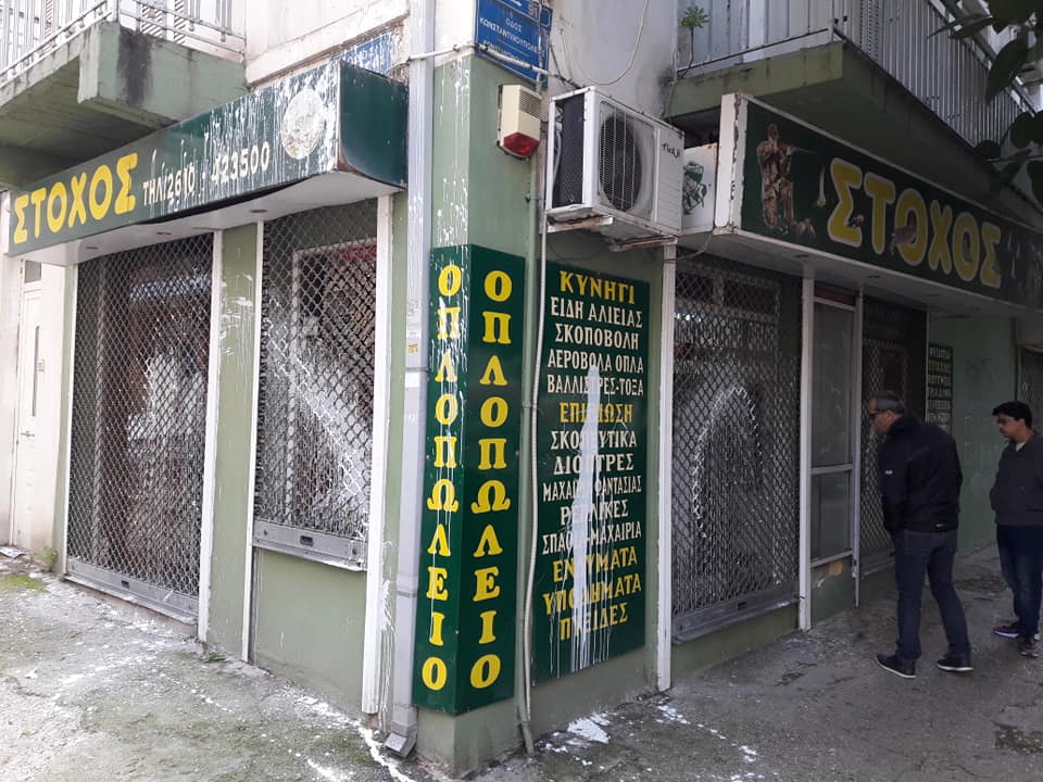 Η αναρχία της οικολογίας ξαναχτύπησε αυτή την φορά στην Πάτρα. Τα ξημερώματα της Κυρικαής 30 Δεκεμβρίου άγνωστοι κουκουλοφόροι βανδάλισαν το κυνηγετικό μαγαζί του Γιάννη Τσιρώνη στην Πάτρα. Οι άγνωστοι έγραψαν με μπογιά το μήνυμα “ΓΙΑ ΚΑΘΕ ΚΥΝΗΓΟ ΕΝΑ ΜΑΧΑΙΡΙ ΣΤΟ ΛΑΙΜΟ” και γέμισαν με μπογιές τις τζαμαρίεςκαι τους τοίχους του μαγαζιού και μετά εξαφανίστηκαν.