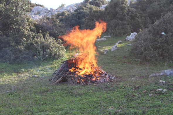 Τα κάρβουνα που θα ψήσουν τις μπριζόλες αγριογούρουνου ετοιμάζονται!!!!