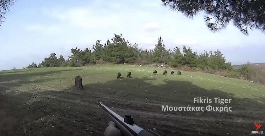 Εξαιρετικό πλάνο από ένα πολύ κοντινό και επικίνδυνο τουφέκισμα αγριόχοιρου στην γειτονική μας Τουρκία. Το κοπάδι με επικεφαλής την γουρούνα διασχίζει τρέχοντας ένα άνοιγμα μεταξύ δυο ντυμένων, όταν ξαφνικά η θυληκιά αντιλαμβάνεται τον κυνηγό και στρέφεται εναντίον του !!!