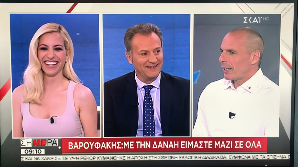Τη Δευτέρα 3 Ιουνίου η πρωινή ενημερωτική εκπομπή του ΣΚΑΙ “ΣΗΜΕΡΑ” που παρουσιάζει ο κυνηγός Δημήτρης Οικονόμου και η Μαρία Αναστασοπούλου φιλοξένησε τον ιδρυτή του νέου πολιτικού κόμματος ΜΕΡΑ25 κ. Γιάνη Βαρουφάκη.