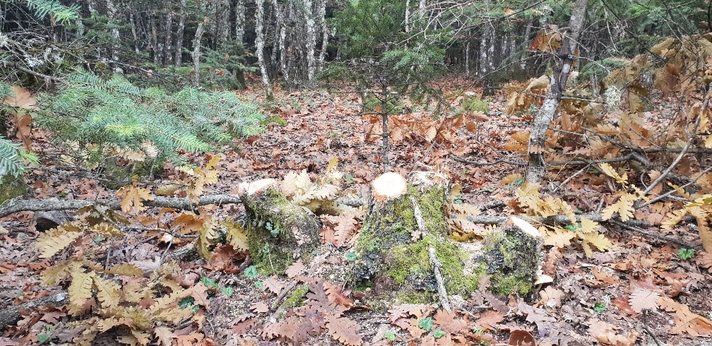 Στον αντίποδα, κάποιο επιτήδειοι, βρήκαν αυτόν τον μικρό φυσικό παράδεισο για να κάνουν “μπίζνα” με καυσόξυλα. Όπως φαίνεται και στις φωτογραφίες, πολλά δέντρα είναι κομμένα από τη ρίζα τους. Οι λαθροϋλοτόμοι, επιλέγουν για την “αποψίλωση” δέντρα που είναι κοντά στο δρόμο, ώστε εύκολα και γρήγορα να φορτώνουν τους κορμούς στο όχημα τους. Επιλέγουν μάλιστα να καταστρέφουν εκείνα που έχουν λεπτούς κορμούς, που δεν χρειάζονται σκίσιμο και έτσι μπορούν να πουληθούν άμεσα στον αγοραστή χωρίς καν να οδηγηθούν σε κάποια αποθήκη, υπό το φόβο των ελέγχων. Από την παραγωγή δηλαδή, στην κατανάλωση. Με συνοπτικές και ανεξέλεγκτες διαδικασίες.